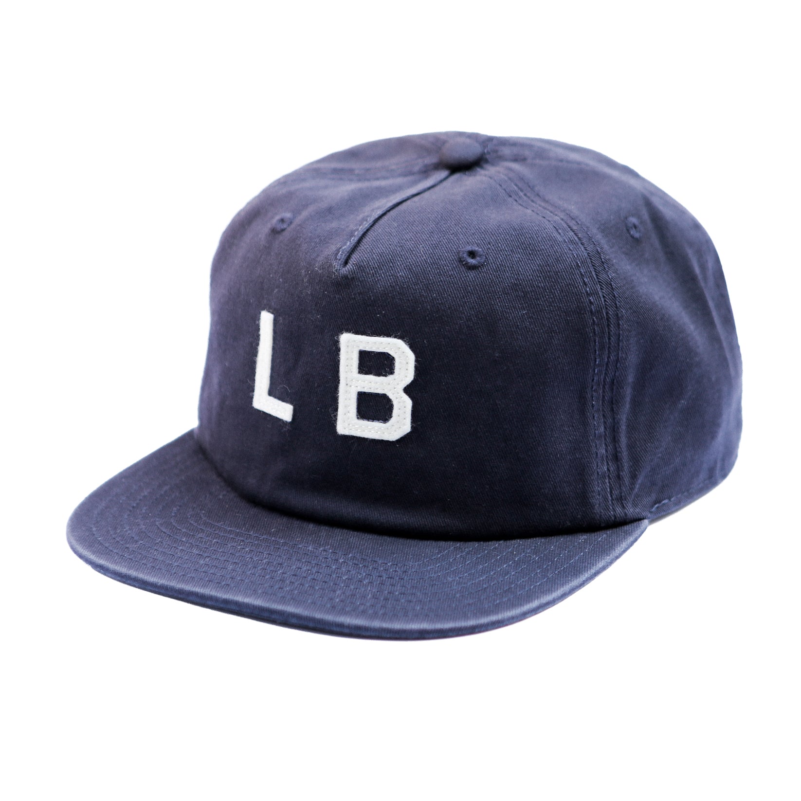 5 panel, two-tone navy strap-back, with navy LB felt application